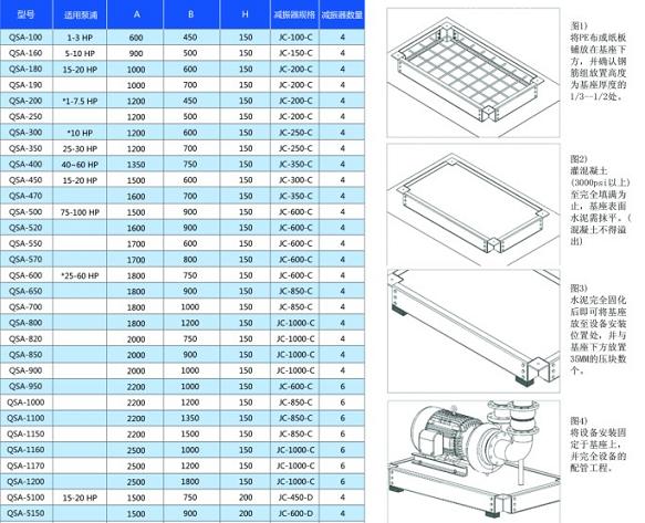 QSA型基座,設(shè)計(jì)有水平調(diào)整螺栓,泵浦按裝后只須調(diào)整水平螺栓,不須以調(diào)整